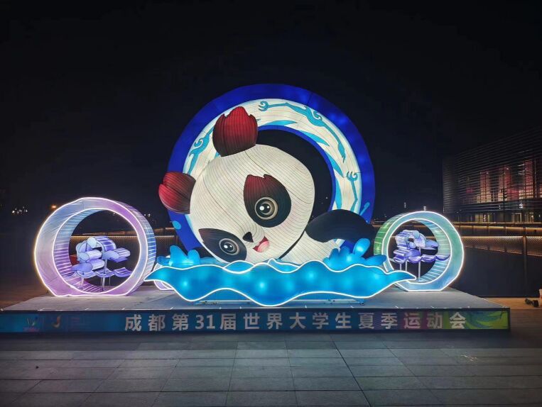 “蓉宝”高高越过彩虹、挥拍击出乒乓球、手持篮球奔向篮筐……这7组灯组围绕“绿色、智慧、活力、共享”的办赛理念,展现大运文化和巴蜀文化,并加入大运会吉祥物“蓉宝”元素来进行设计,让各国大学生近距离感受“中国灯城”的魅力。