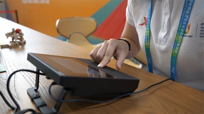 “在接待一些小语种国家的运动员领队和官员时,如果他们不会说英语,我们就会使用这套智能翻译对讲系统,这里有83种不同国家地区的语言。”欢迎中心工作人员刘子瑕指着服务台的两个黑色小盒子解释说,这套大运村智能翻译对讲系统,搭载了新一代的AI翻译无障碍交流体系,将为整个大运期间全线提供语言在线互译、文本转换和语音合成服务。