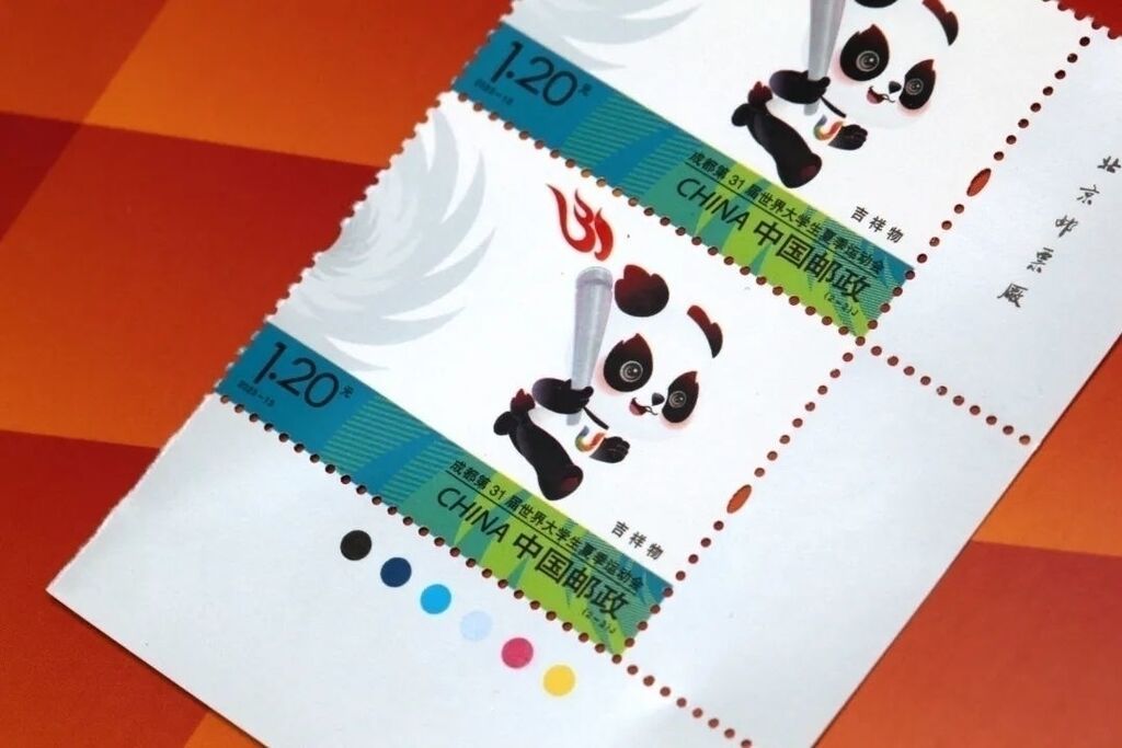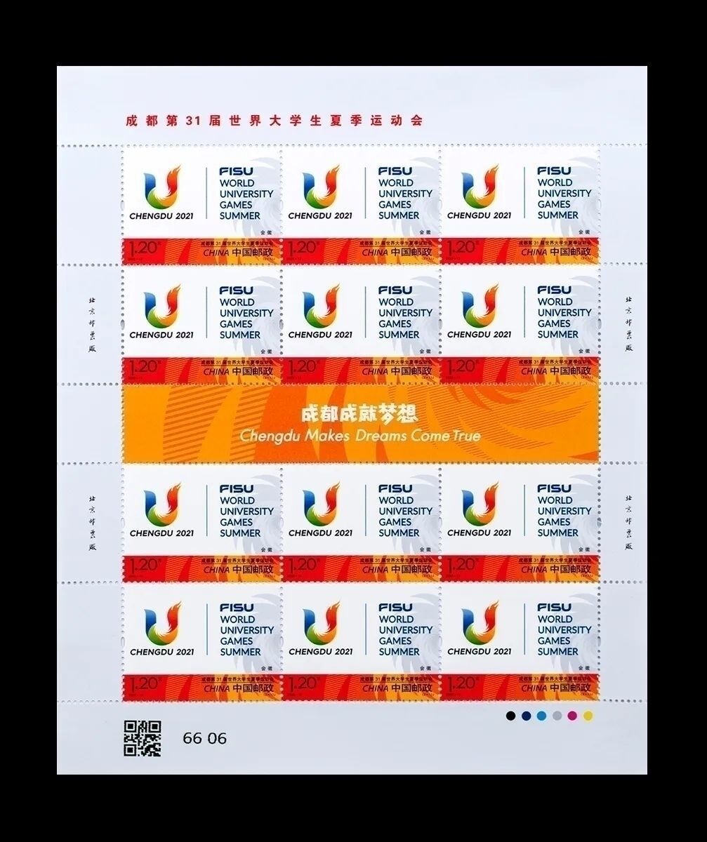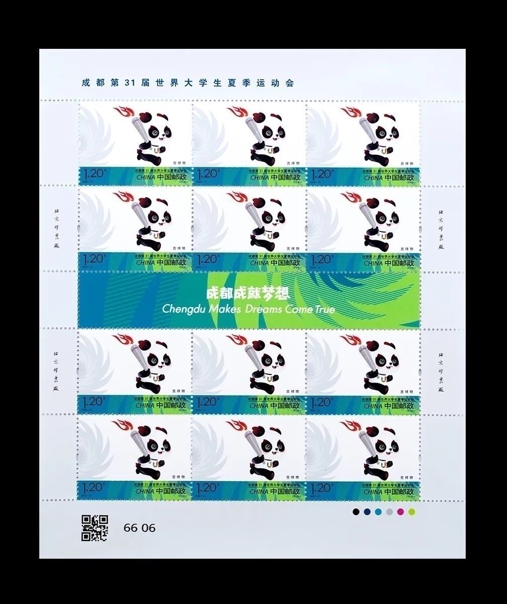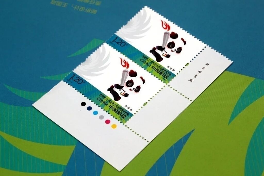 邮票分别以成都大运会会徽、吉祥物为画面主体,背景及局部图案采用31届大运会的标准辅助图形——太阳神鸟,并点缀靓丽、跳跃的运动会标准色。版票过桥位置突出表现此次运动会的口号“成都成就梦想”,整体画面时尚、明快。由北京邮票厂有限公司采用影写工艺印制。