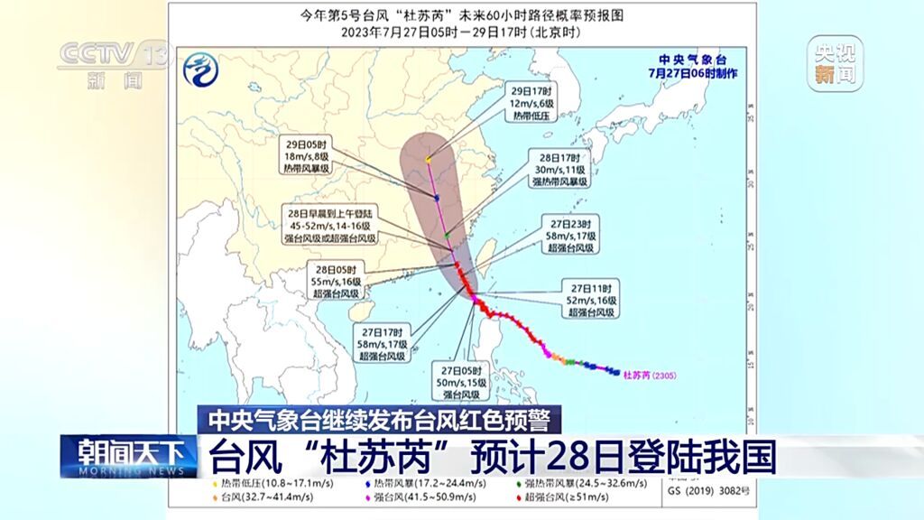 中央气象台今早6点继续发布台风红色预警。预计,台风“杜苏芮”将以每小时10至15公里的速度向西北方向移动,强度将有所增强,然后逐渐向福建福清到广东惠来一带沿海靠近,并将于28日早晨到上午在上述沿海地区登陆,最大可能在福建晋江到闽粤交界沿海登陆。