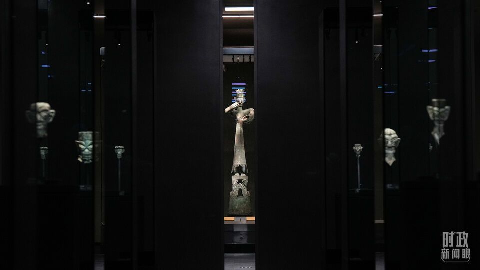 △三星堆出土的青铜神树。(总台国广记者李晋拍摄)