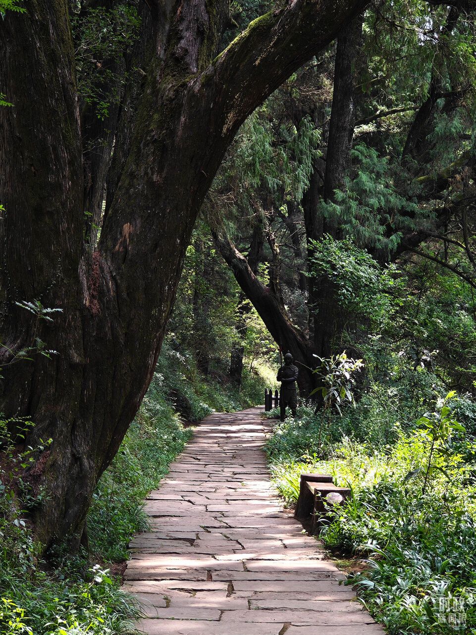 千年古柏,与千年古道相伴相生,历经风雨洗礼,见证历史变迁,一路逶迤连绵,环云耸翠,夹道成廊,升华为历史与文化交融的鲜活记忆,成为自然与人文共生的珍贵标本。