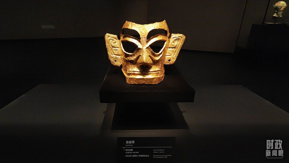 △三星堆博物馆馆藏:金面罩。(总台央视记者程铖拍摄)