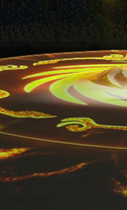 而作为在成都金沙遗址出土的文物,也是中国文化遗产的标志,太阳神鸟将贯穿在整个开幕式中。从开幕式的第一秒到最后圣火点燃,它始终存在。现场有一个特殊的灯光装置,在不同时刻作为太阳神鸟的意象发出耀眼的光芒。