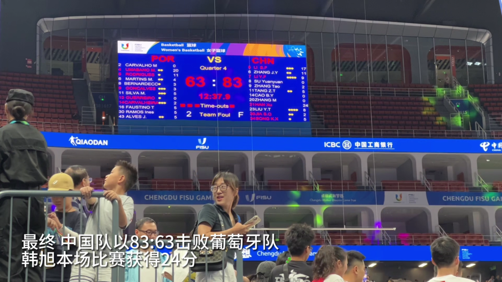 7月28日,成都大运会女子篮球预赛开打,中国队83比63战胜葡萄牙队,取得开门红!整场比赛,中国队内线占优,抓下42个篮板,领先对手20个。