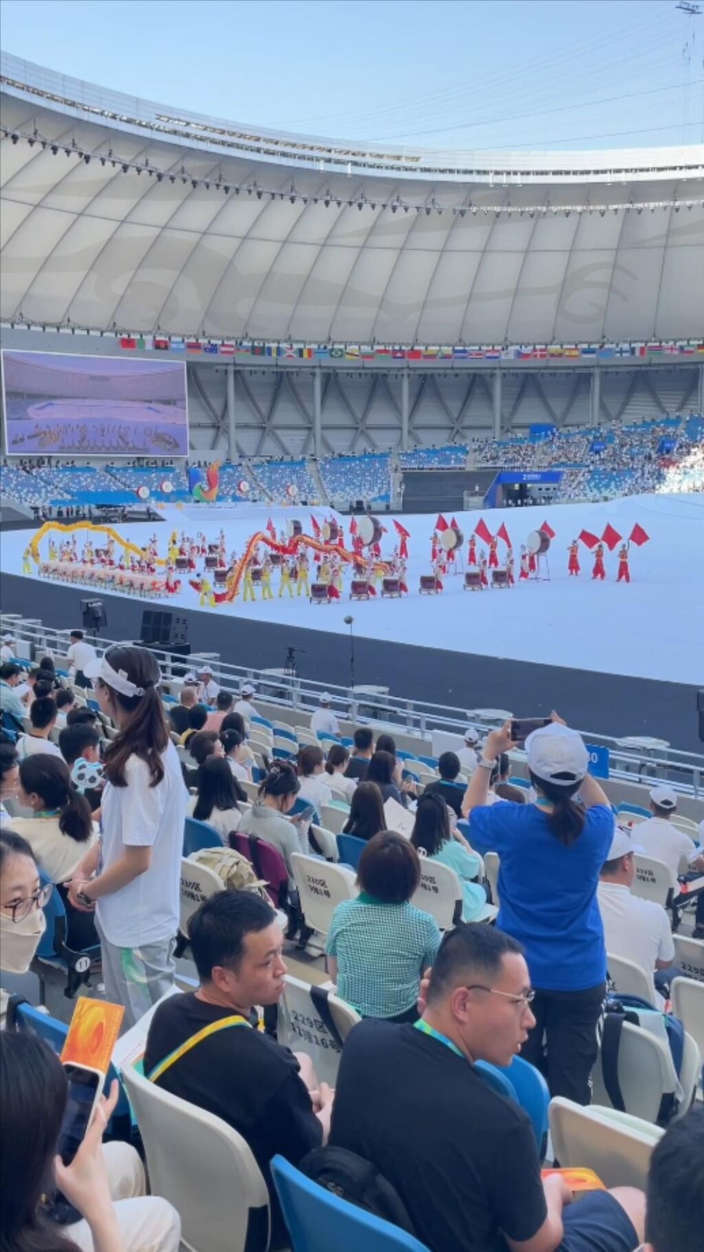 开幕式之前,主体育场里举行了欢迎仪式,四川用民族舞蹈、民歌、峨眉山武术等隆重迎接从世界各地远道而来的客人。