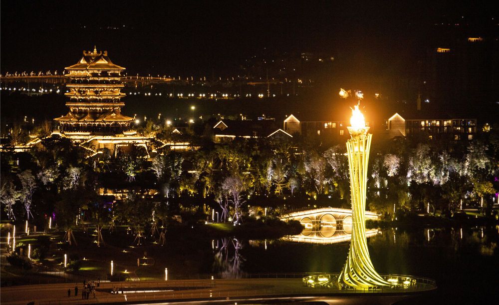 主火炬塔的火焰熊熊燃烧,照亮了全人类追求和平与发展的共同愿望,照亮了构建人类命运共同体的共同梦想!