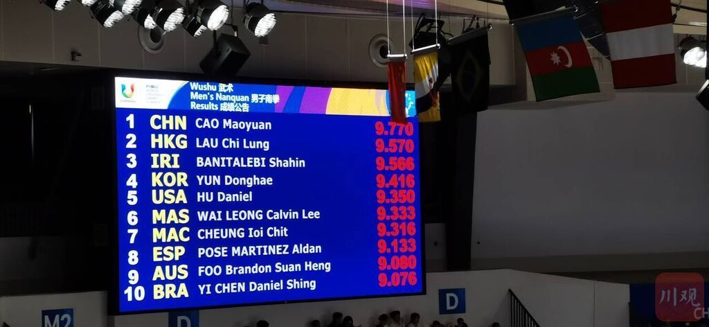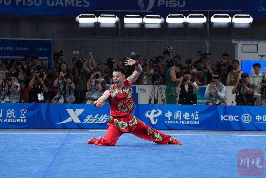 7月29日,成都第31届世界大学生夏季运动会武术比赛迎来第一个比赛项目,这也是武术项目第二次出现在大运会的赛场之上。来自四川内江的曹茂园在男子南拳比赛中以9.770分获得这个项目的金牌,这不仅是本届成都大运会产生的第一枚金牌,同时也是中国体育代表团在本届成都大运会上拿到的第一枚金牌。