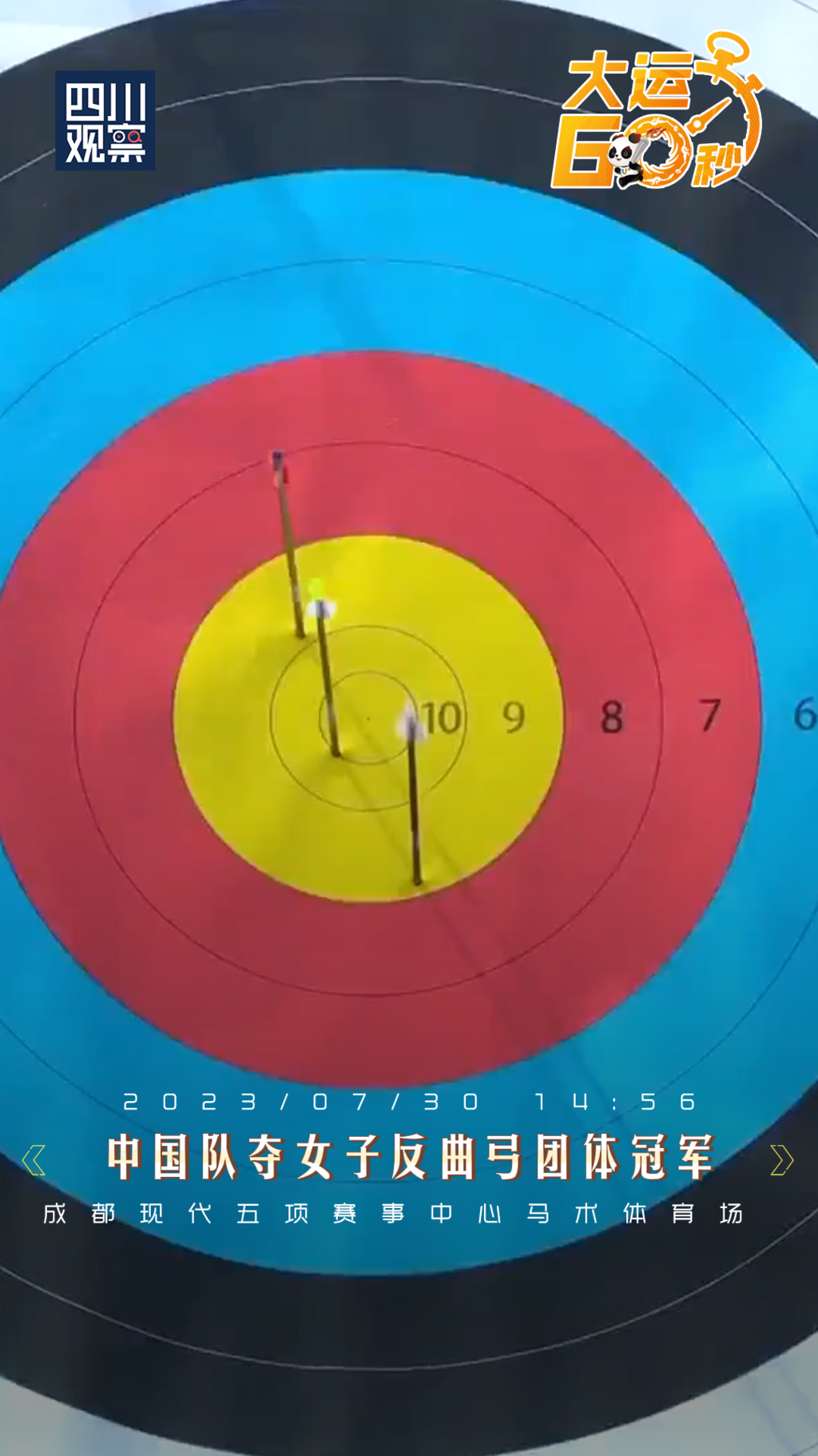 射箭项目男子复合弓团体决赛中,中国队以总环数231-224战胜法国队,夺得金牌。这也是中国射箭队在本届大运会的首枚金牌!法国队和印度队分获该项目二三名。