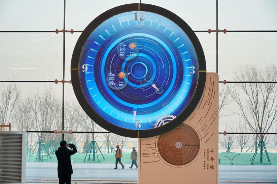 井冈山的翠竹郁郁葱葱,深圳的前海石屹然矗立,雄安高铁站内的“千年轮”转动不停……