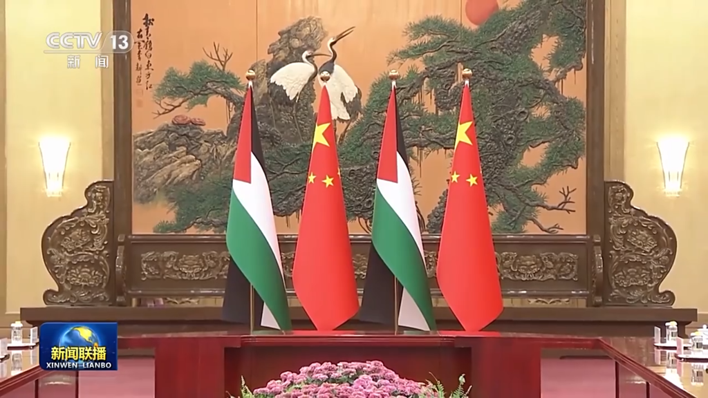 在同巴勒斯坦总统阿巴斯会谈时,针对延宕半个多世纪的巴勒斯坦问题,习主席提出三点主张,并表示中方愿为巴方实现内部和解、推动和谈发挥积极作用。阿巴斯对此表示感谢。