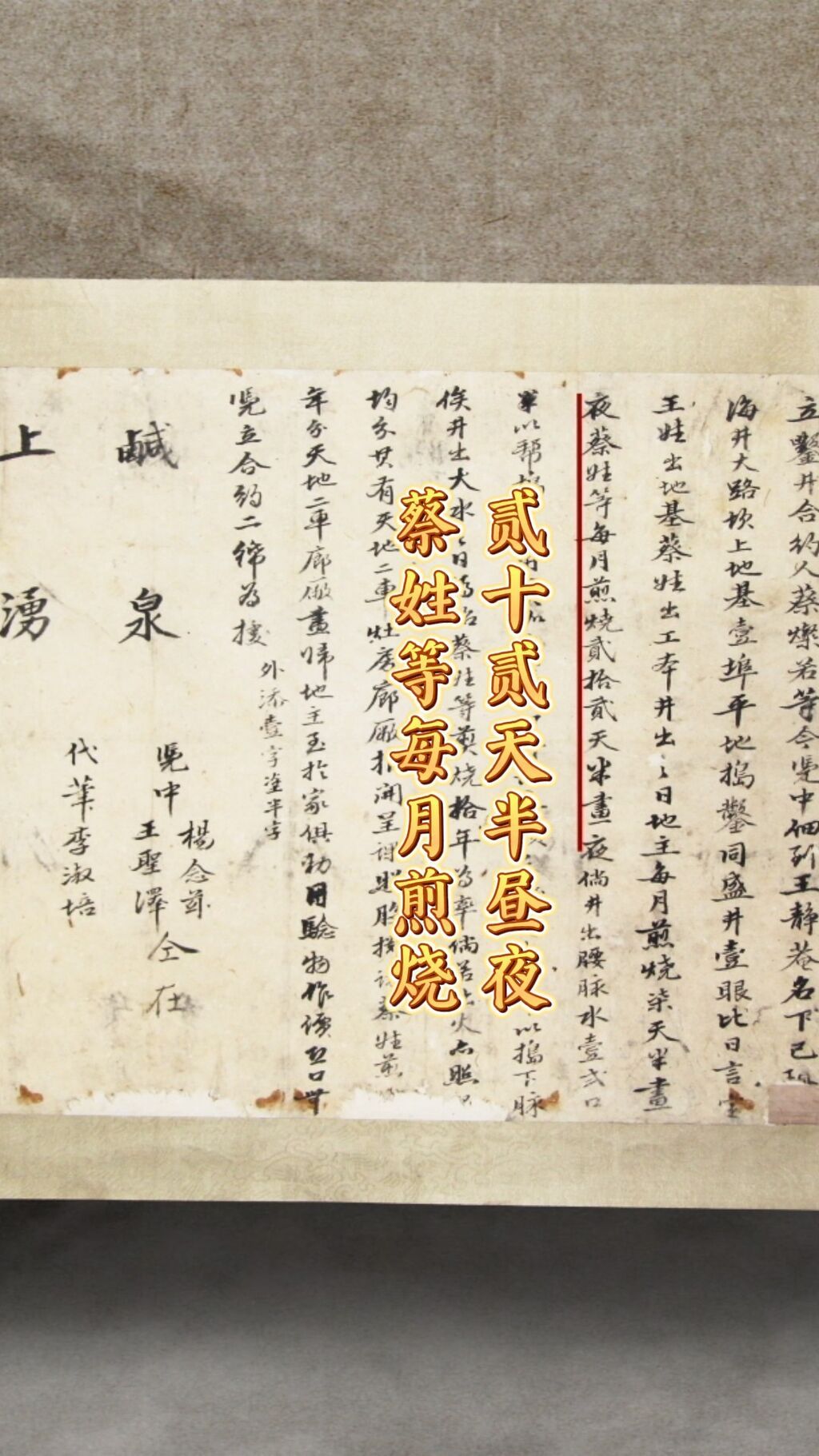 传统井盐业,是一项用时相当长且耗资巨大的产业。若凿井多年,仍不见卤水,盐商将面临血本无归的窘境。为了集中资金降低风险,盐商之间或盐商与地主之间,就形成了集资凿井、土地入股、按股分红的“井约”。乾隆44年的10月21日,富荣盐场的地主王静庵和投资商蔡灿若签订了这份《同盛井约》。这份契约属于无面值股合约,是一种比例股股票,签订契约的蔡灿若和王静庵两人分别代表了投资者和地主方,也就是现在的甲、乙双方。从股票的角度来看,《同盛井约》符合股票的基本特征:它具有参与性,规定了可以以土地、人力、资本入股;具有盈利性,若凿井成功,地主可享有该盐井7个半昼夜的生产权,投资者则可享有22个半昼夜的生产权;投资者可开凿十年,期满后,盐井和设备等都将归还地主,也就是现在的BOT投资模式;另外,合约一式两份,甲乙双方各执一份。有意思的是,两份井约末尾的“合约二纸”四字均只有一半,这就类似于现在合同上的骑缝章。