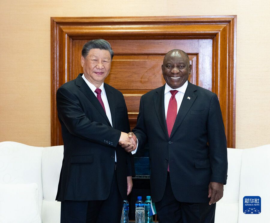 习近平指出,这是我第四次以中国国家主席身份访问南非。10年来,我亲历了中南关系的蓬勃发展。中南关系之所以好、中南友谊之所以深,关键在于两国两党在各自发展道路上休戚与共,结下了深厚友谊。当前,中国正在以中国式现代化全面推进中华民族伟大复兴,南非正在探索符合本国国情的现代化道路。中方愿同南方一道,传承友好、深化合作、加强协作,推动中南全面战略伙伴关系不断迈上新台阶,携手构建高水平中南命运共同体。