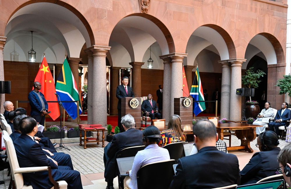 在会谈中,拉马福萨表示,当今世界面临地缘政治、能源危机等多重严峻复杂挑战。我完全赞同习近平主席提出的合作共赢主张。南非和其他全球南方国家都希望同中国加强团结合作,更好共同应对挑战,推动建立更加平等、公正、合理的国际秩序。