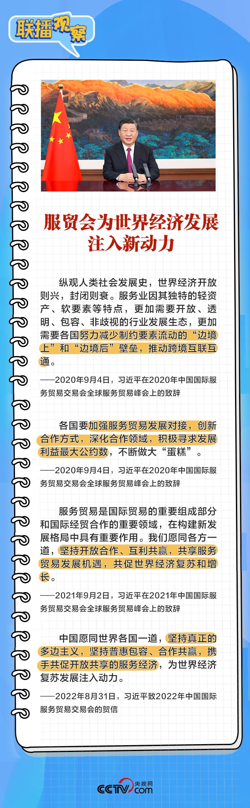 联播+“当前,百年变局加速演进,世界经济复苏动力不足。服务贸易是国际贸易的重要组成部分,服务业是国际经贸合作的重要领域”。9月2日上午,习近平主席在北京向2023年中国国际服务贸易交易会全球服务贸易峰会发表视频致辞。