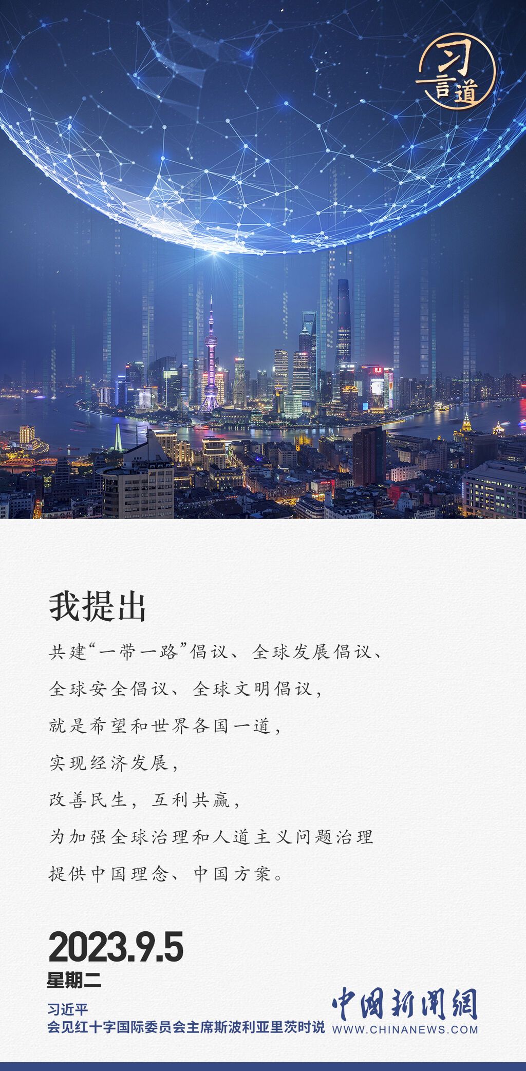 9月5日下午,国家主席习近平在人民大会堂会见红十字国际委员会主席斯波利亚里茨。习近平指出——