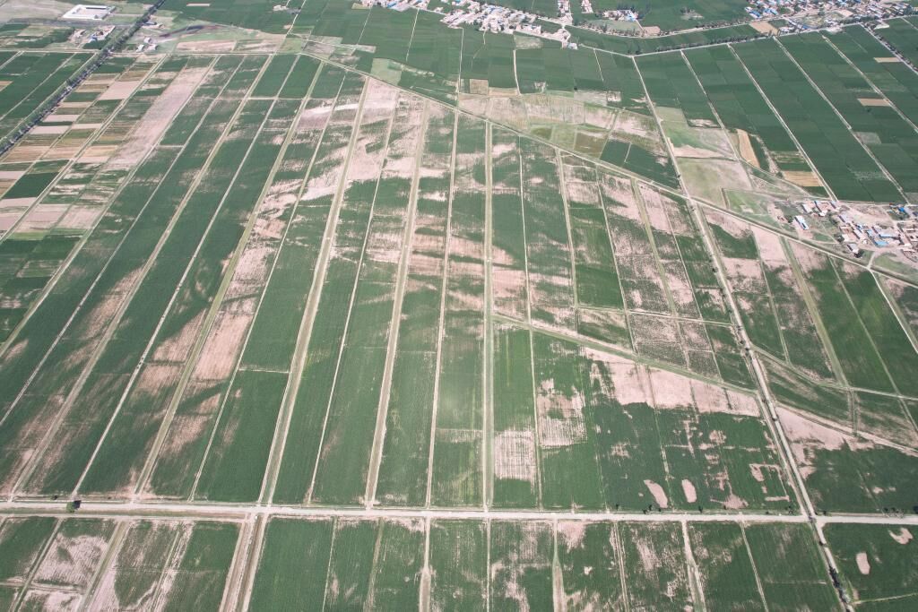 宁夏石嘴山市平罗县宝丰村位于宁夏引黄灌区北部,因蒸发强烈,盐分聚积地表,耕地一半是盐碱地。