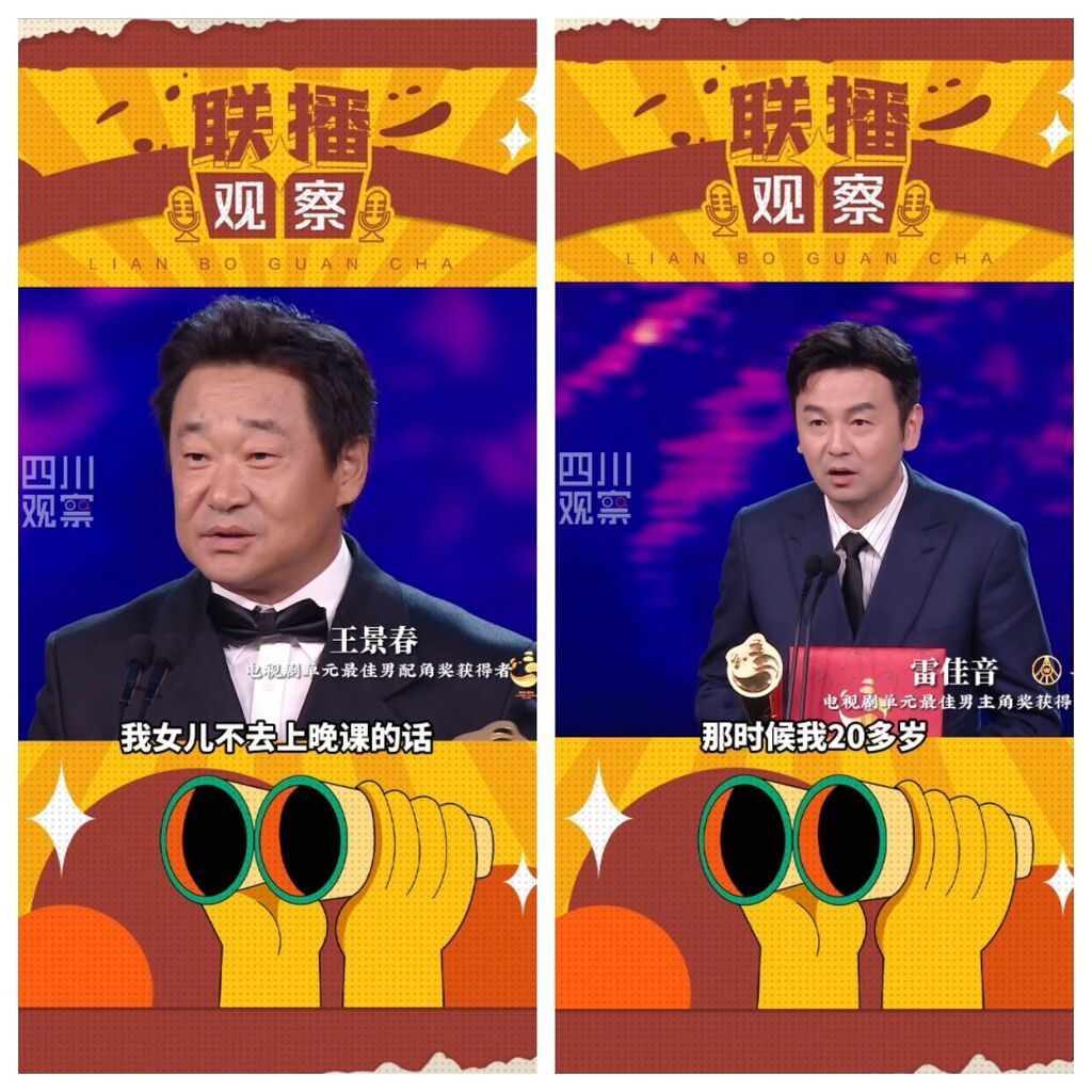 要说盛典最温情的时刻,那就要属演员王景春、雷佳音在获得电视剧单元最佳男配角、男主角时的获奖感言了,王景春想把这个奖送给自己的女儿,而雷佳音则特别感谢了前辈张嘉益,父女亲情、兄弟友情,都格外让人动容。