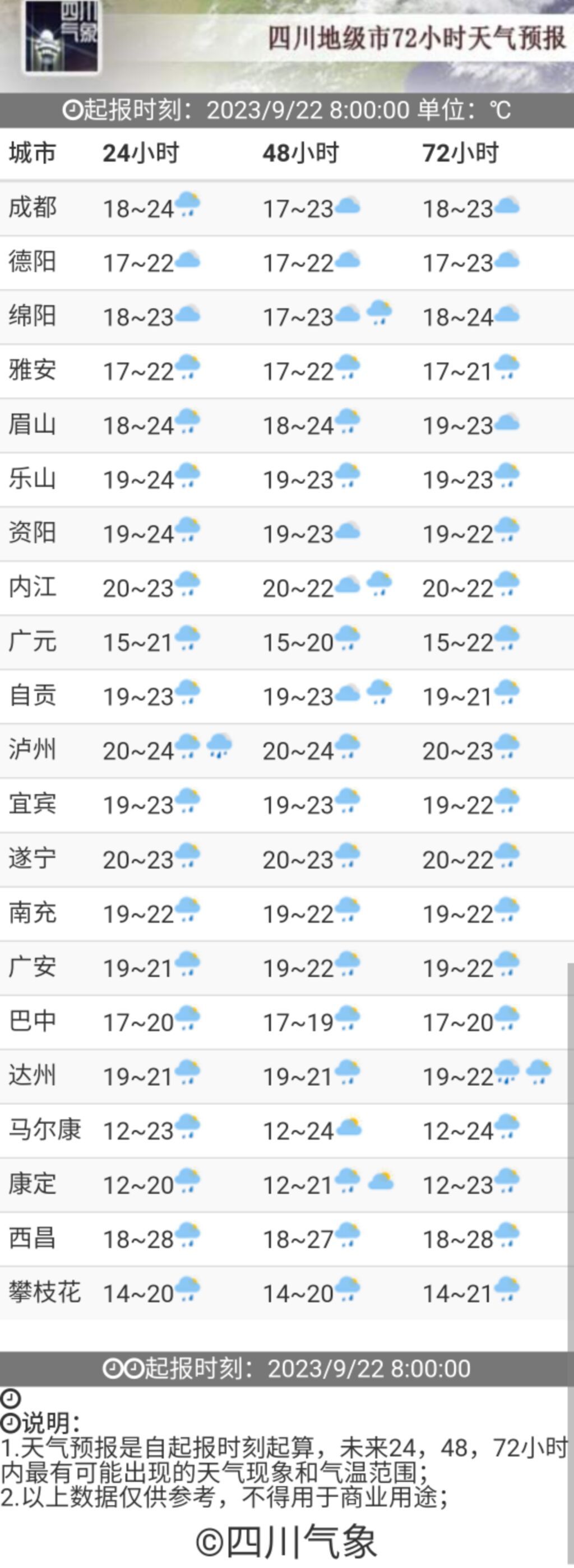 四川省气象台预计,未来三天,全省大部阴天间多云有阵雨或小雨。