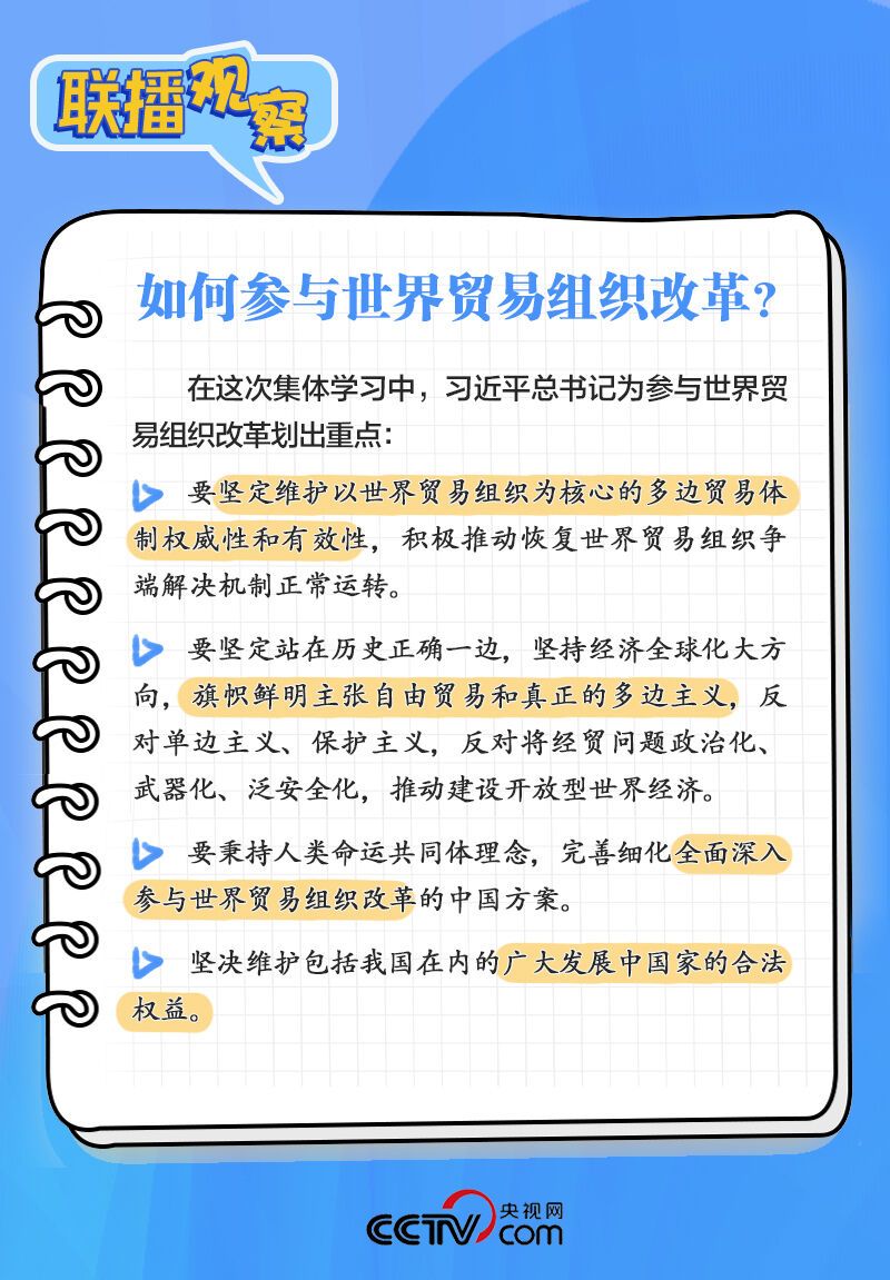 9月27日,二十届中央政治局进行第八次集体学习,学习的主题是“世界贸易组织规则与世界贸易组织改革”。中央政治局的同志认真听取了专家讲解,并进行了讨论。习近平总书记在听取讲解和讨论后发表了重要讲话。