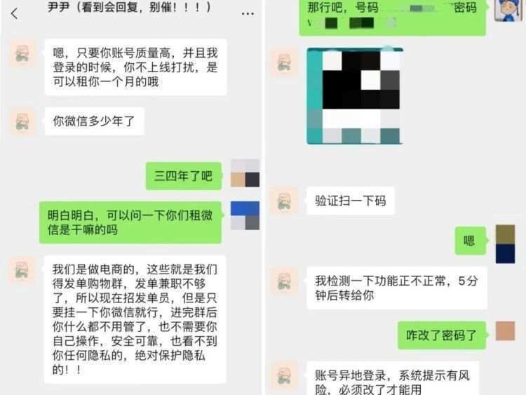 2、诈骗和欺诈:租借者可能利用出租微信账号、QQ帐号进行诈或欺诈活动,例如通过微信账号、QQ帐号发送虚假信息或散布恶意链接,骗取受害者财产或个人信息,进行“洗钱”活动,出租者或将承担相应刑事或行政责任。