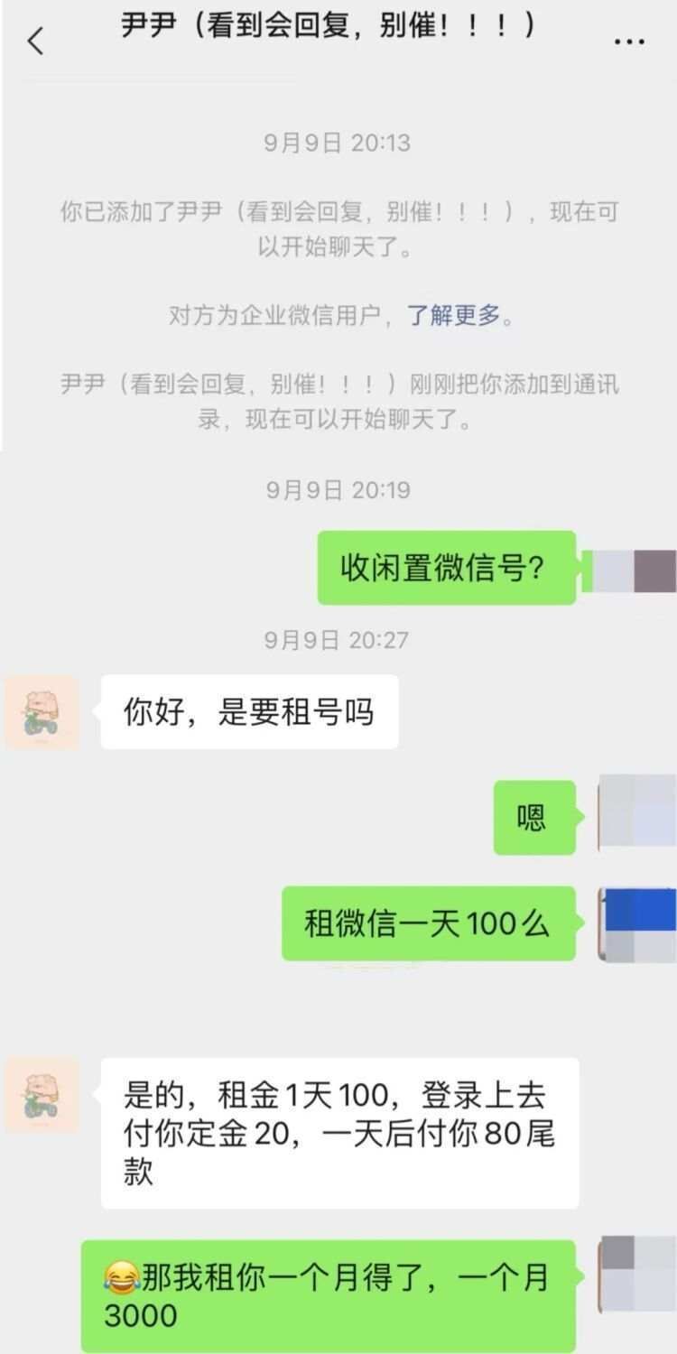 出租自己的微信账号