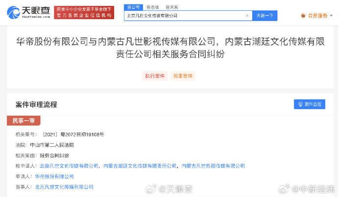 天眼查App显示,近日,吴亦凡关联公司新增一则被执行人信息,执行标的1896万余元。吴亦凡关联公司北京凡世文化传媒有限公司成立于2015年1月,法定代表人为吴亦凡表哥吴林,由吴林和胡冰洁共同持股,吴亦凡母亲吴秀芹任监事。据悉,此前,华帝股份曾向吴亦凡公司索要千万代言费,华帝公司请求法院判令解除其与被告凡世影视传媒公司、潮廷文化传媒公司签订的服务合同;并判令上述两公司和北京凡世文化传媒有限公司连带向原告退还服务费1750万元及利息等。