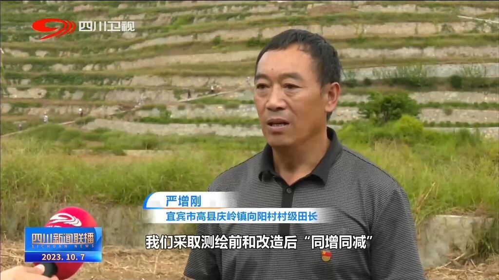 宜宾市高县庆岭镇向阳村 村级田长 严增刚:我们采取测绘前和改造后“同增同减”,改造前的测绘面积和改造后的面积分给村民,保证土地面积不减少。对于影响村民生产收入减少问题,由我们的施工单位优先安排我们农民到高标准农田建设中来务工。