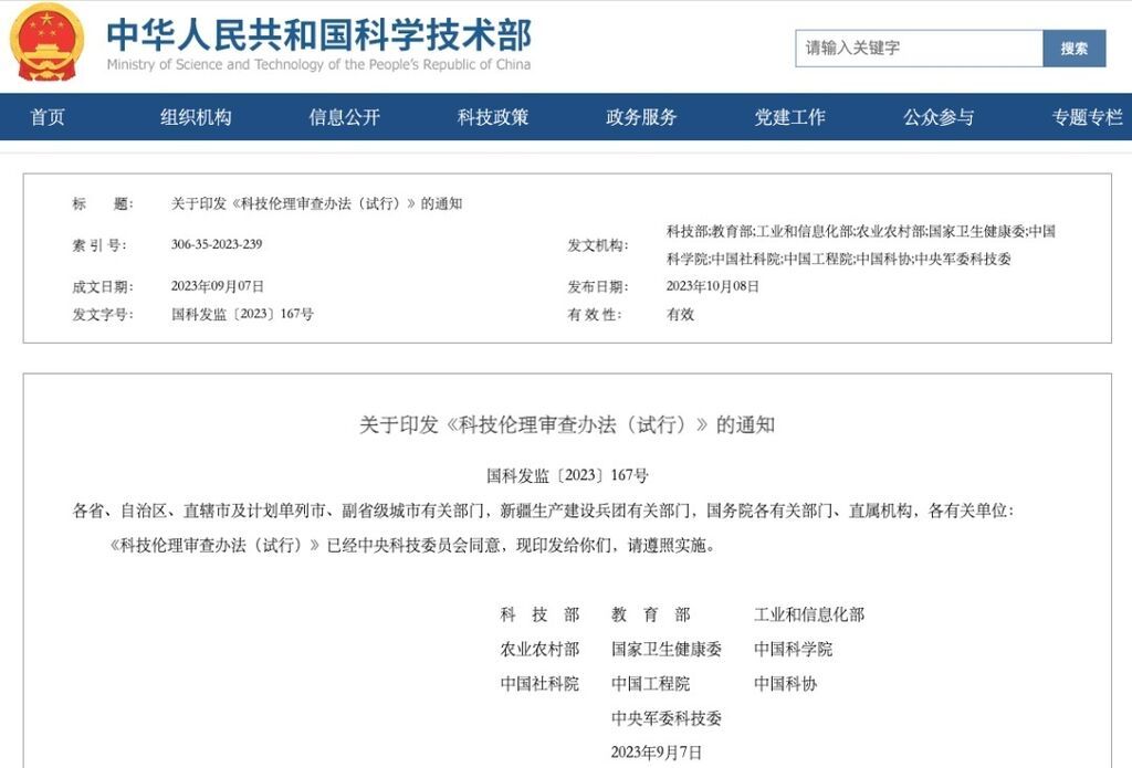 8日,由科技部、教育部、工业和信息化部等十部门联合印发的《科技伦理审查办法(试行)》(以下简称《审查办法》)正式公布,意在规范科学研究、技术开发等科技活动的科技伦理审查工作,强化科技伦理风险防控,促进负责任创新。