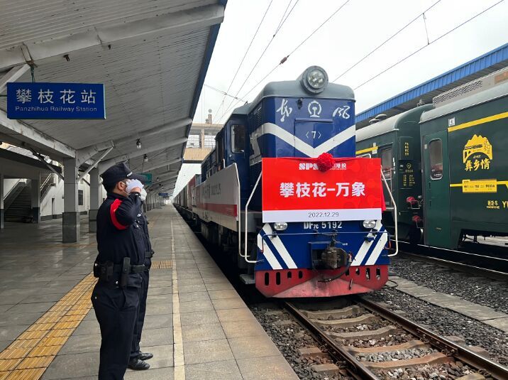 2022年12月29日,中老铁路在四川迎来标志性事件:当天上午,中老班列(攀枝花)从攀枝花火车站首发,满载着钛白粉、建材(瓷砖)、机电产品等省内工业制成品在3天后到达老挝万象,并通过接驳铁路或公路通达越南、泰国等东盟国家。这是新成昆铁路开通后的第一列以火车整列形式组织川货出川的国际货运班列,以直达的方式向东盟国家出口货物,标志着从东南亚经攀枝花至成都,到我国西部及欧洲距离最短、效率最高、运行最稳的国际铁路通道全部打通。