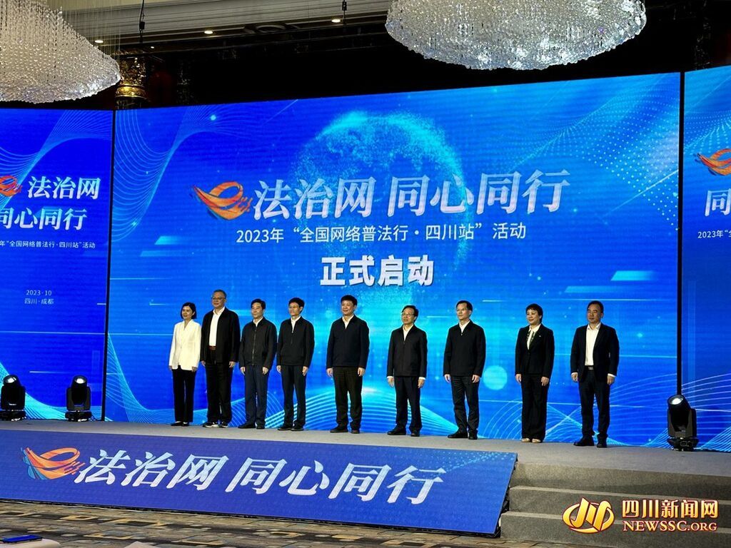 四川新闻网-首屏新闻成都10月11日讯(记者 张颍 摄影报道)e法治网 同心同行,2023年“全国网络普法行·四川站”活动于今日在成都正式启动。