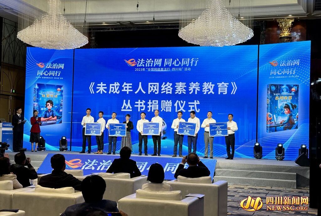 启动仪式现场还进行了《未成年人网络素养教育》丛书的捐赠仪式并宣布2023年“全国网络普法行”四川站活动正式启动。