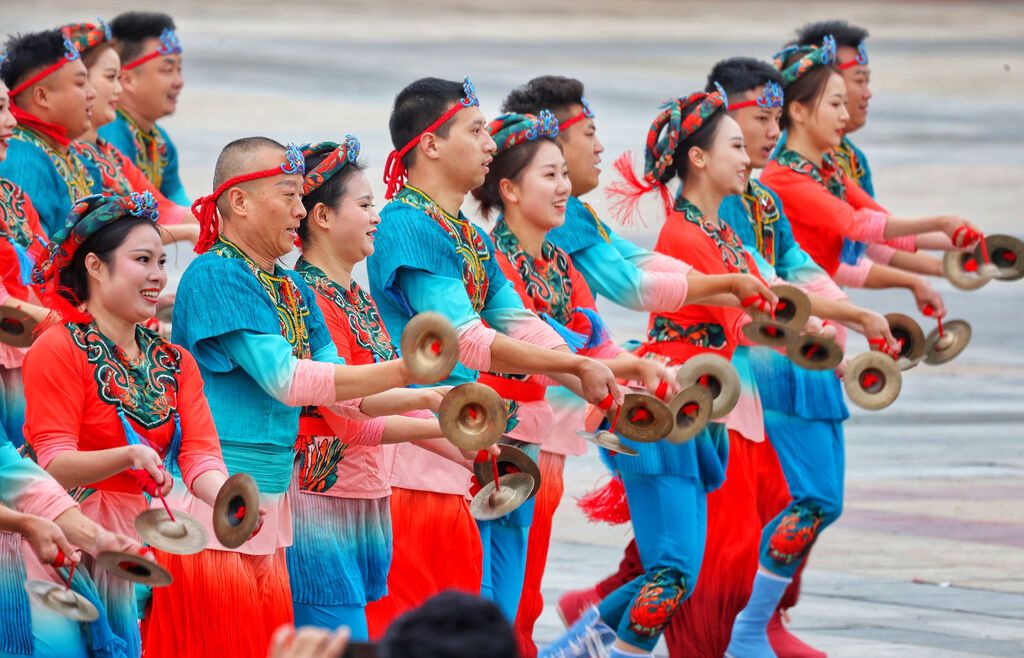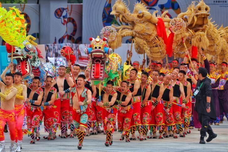 国内参演队伍也是百花齐放。少林功夫、广东醒狮、潮阳英歌、米脂大秧歌等精彩纷呈。在“巴风蜀韵”展演环节,来自重庆市、成都市、泸州市、乐山市、达州市组成的龙舞集合表演,将具有鲜明的地域特色、丰厚的文化积淀的铜梁龙舞、泸州雨坛彩龙、沐川草龙、安仁板凳龙等非遗项目集中呈现,轻盈灵动、气势磅礴的表演充满着浓郁的生活气息,映照出民俗文化中的美好寓意。