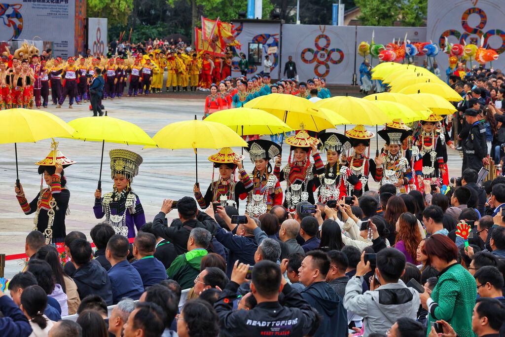 10月12日上午,成都国际非物质文化遗产博览园。伴随着47支特色鲜明的国内外非遗表演队伍带来的天府大巡游,第八届中国成都国际非物质文化遗产节拉开大幕。时隔4年以后,再度开启的非遗节以绚丽多姿的非遗表演、特色鲜明的展览展示、直击非遗发展现状的学术论坛等系列活动,揭示出非遗节在忠实践行《非物质文化遗产公约》,在推动非遗保护传承和文化交流、文明互鉴方面发挥的积极作用,也为公众开启了一场难得的非遗盛宴。