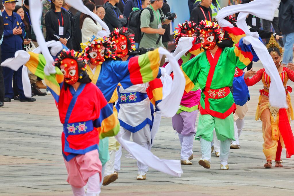 现场,韩国代表队带来了诞生于古代朝鲜半岛的综合性戏剧艺术凤山假面舞。参与巡游的韩国代表队负责人尹基宗介绍,他们此次非遗节带来的面具多达30多种,塑造了不同的角色,配合幽默活泼的表演风格,让即使不懂韩文的观众也能融入其中。