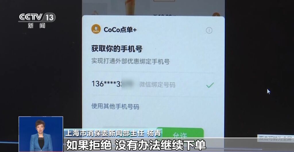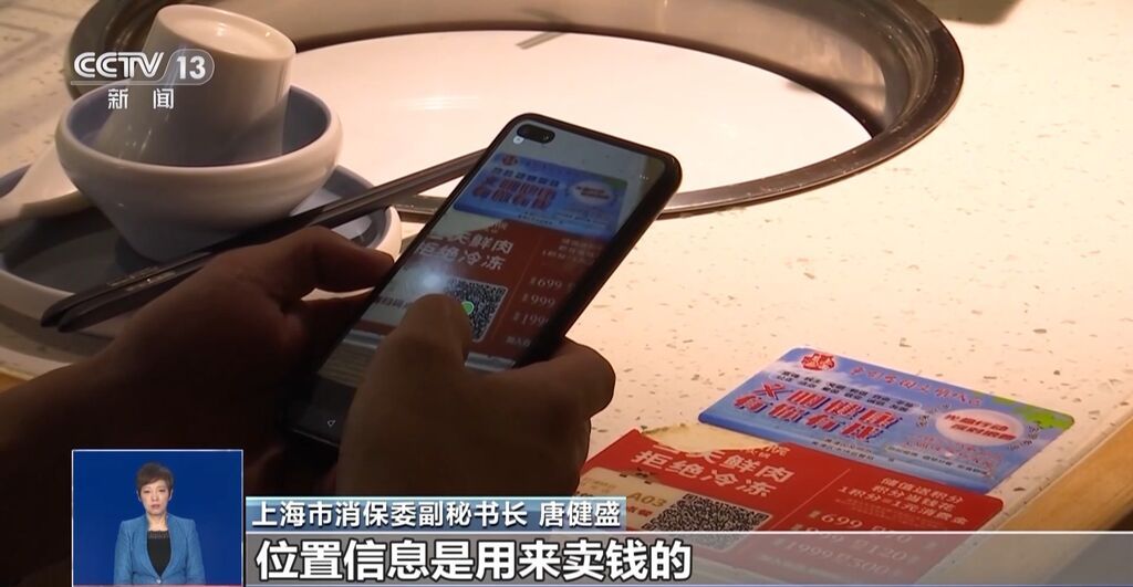 上海市消保委副秘书长 唐健盛:为什么一定要手机号呢?手机号其实就是用来“穿透”消费者个人信息的。因为消费者可能在很多的平台,很多线上线下的场景下做不同的消费,数据只有被“穿透”了以后才更值钱的。位置信息又是干什么用的呢?位置信息是用来卖钱的,可以把消费者这个信息卖给在他的空间位置附近的商家。