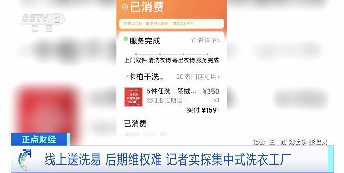 (央视财经《正点财经》)近年来,手机一键下单、快递上门取送的线上洗衣服务,凭借其方便快捷、价格优惠等卖点,吸引了不少消费者下单。但家住上海的钱女士,却因为购买了一次线上洗衣服务,开启了长达三个月的维权之路。