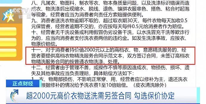 超2000元高价衣物送洗需另签合同,勾选保价协定