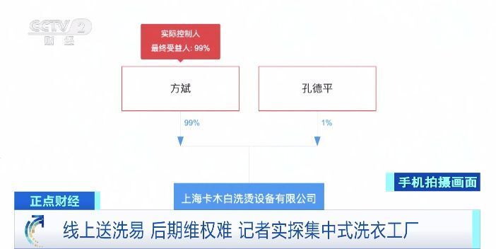 记者尝试在该门店下单,店面仍在正常运作。根据寄送地址,记者多番波折来到了上海青浦区的另一家洗衣工厂。工作人员表示,该洗衣门店的实际控制人已换成上海卡木白洗烫设备有限公司,目前该门店的实际洗衣业务,已由公司来承担。