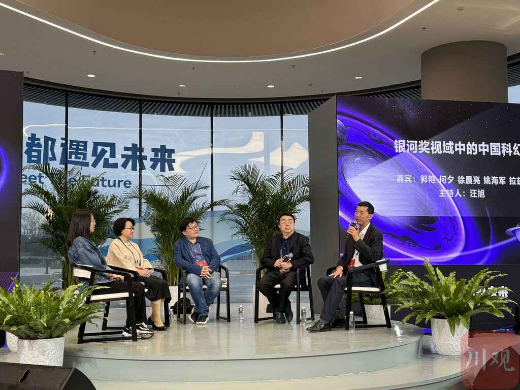 10月18日下午,2023成都世界科幻大会开幕当天,“银河奖视域中的中国科幻”主题沙龙在成都科幻馆地球厅举行。围绕“银河奖”与“中国科幻”,鲁迅文学院副研究员、鲁迅文学奖评委郭艳,人民文学出版社编审、《当代》杂志主编徐晨亮,科幻作家、16次银河奖获得者何夕,与《科幻世界》杂志社副总编辑姚海军展开对谈。