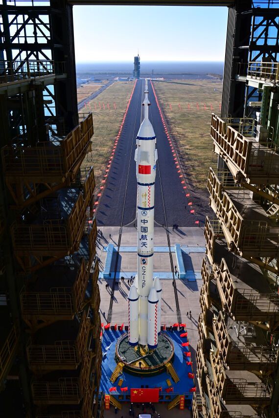 神舟十七号船箭组合体已于本月19日转运至发射区。 新华社 图