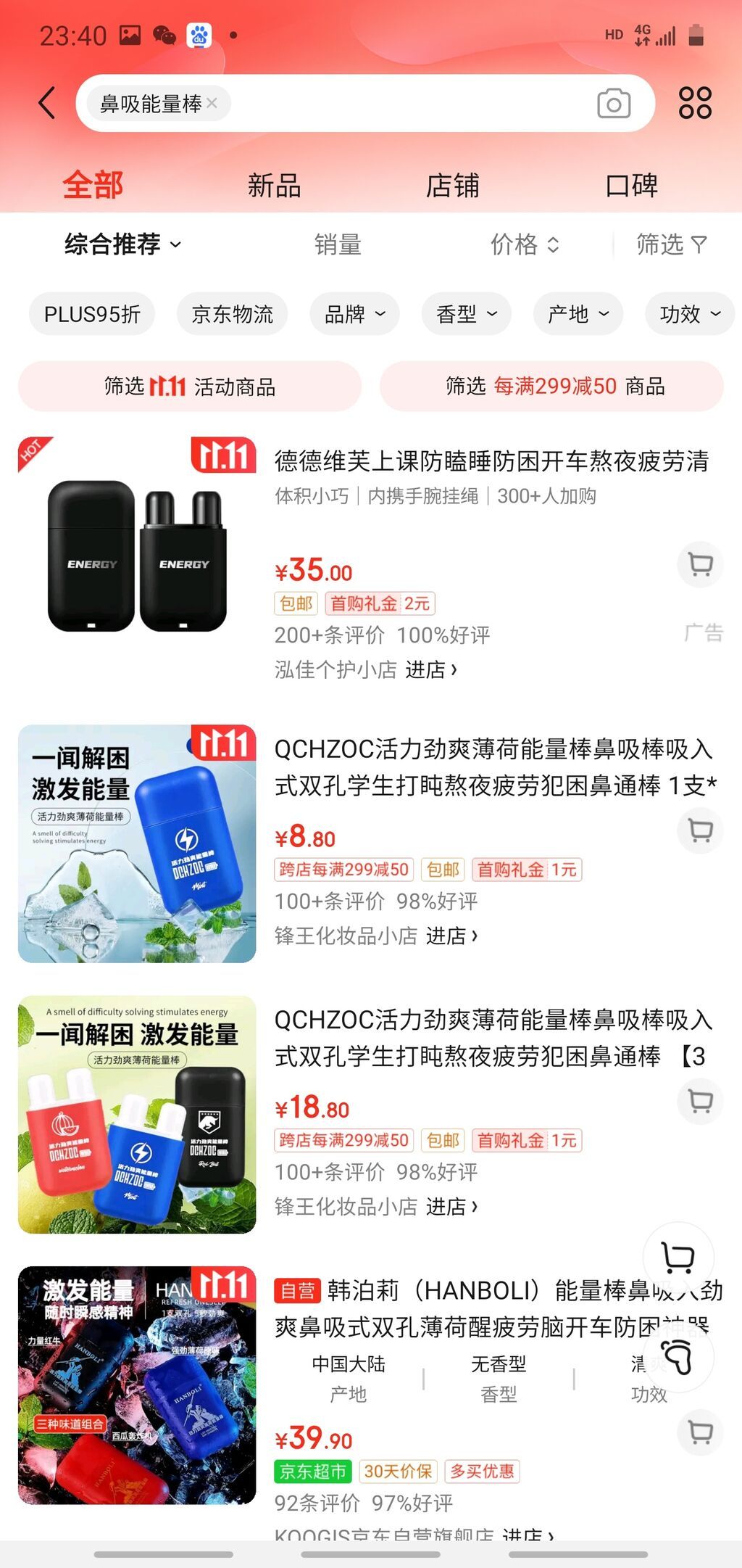 “防困、秒清醒,随时随地状态加满!”最近,一种叫“鼻吸能量棒”的东西,在学生群体中流行开来。在电商平台搜索发现,不少线上商家在售卖这种“鼻吸能量棒”,价格多在几元至几十元之间,部分产品月销量已达上千件。它的外形是两根棒,正好放到鼻子里,详细成分表为:薄荷脑、冰片、木糖醇、植物精油,被商家宣称“纯净无毒”,注意事项写道“若使用过程中感到不适,请停止使用”。