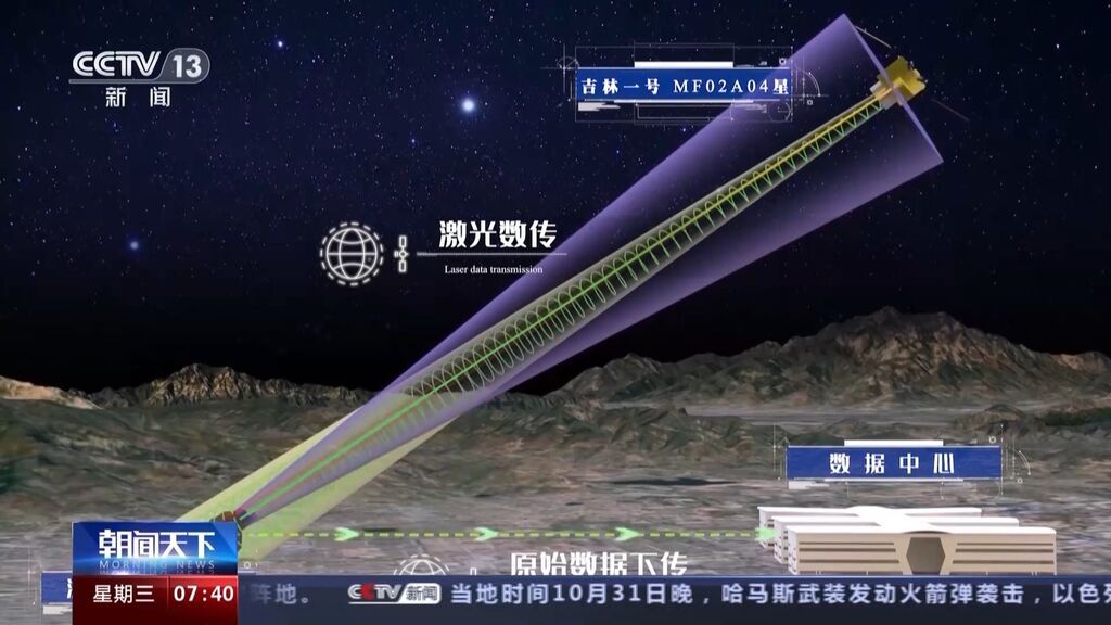 长光卫星技术股份有限公司信息通信技术研究室主任 邢斯瑞:传统我们采用的是微波的手段,现在我们试验成功的激光数据传输,它将原来的速率提高了大概十倍。比作行车道的话,原来是单车道,现在是十车道。