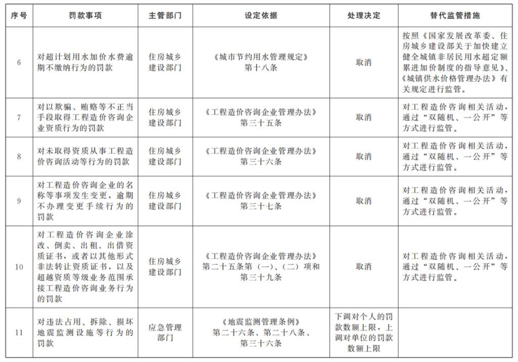 为进一步优化营商环境,国务院开展了清理行政法规和部门规章中罚款事项工作。经清理,决定取消住房城乡建设等领域16个罚款事项,调整工业和信息化等领域17个罚款事项。取消罚款事项的,自本决定印发之日起暂时停止适用相关行政法规和部门规章中的有关罚款规定。调整罚款事项的,按照修改后的相关行政法规和部门规章中的有关罚款规定执行。