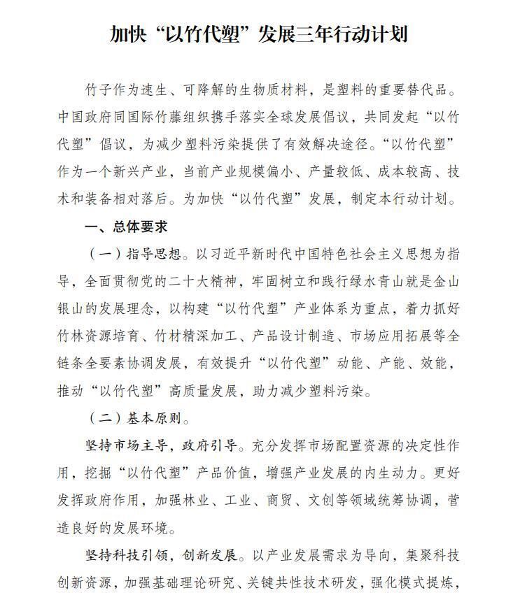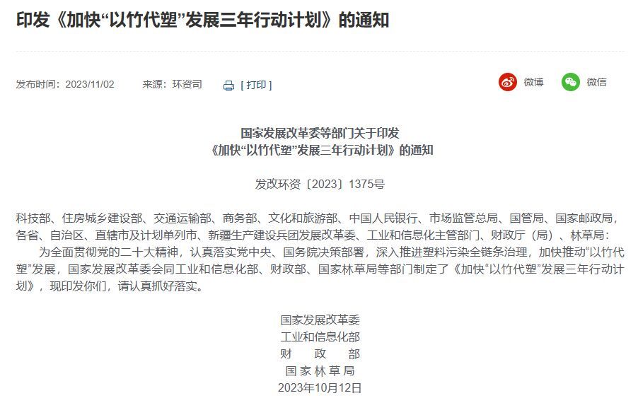 《加快“以竹代塑”发展三年行动计划》。来源:国家发展改革委官网