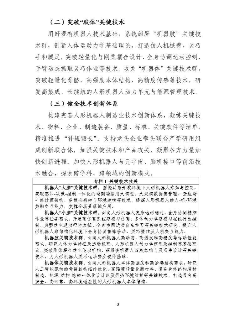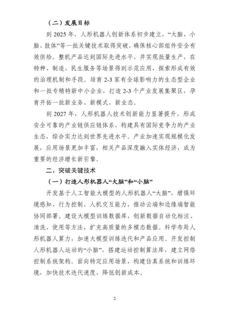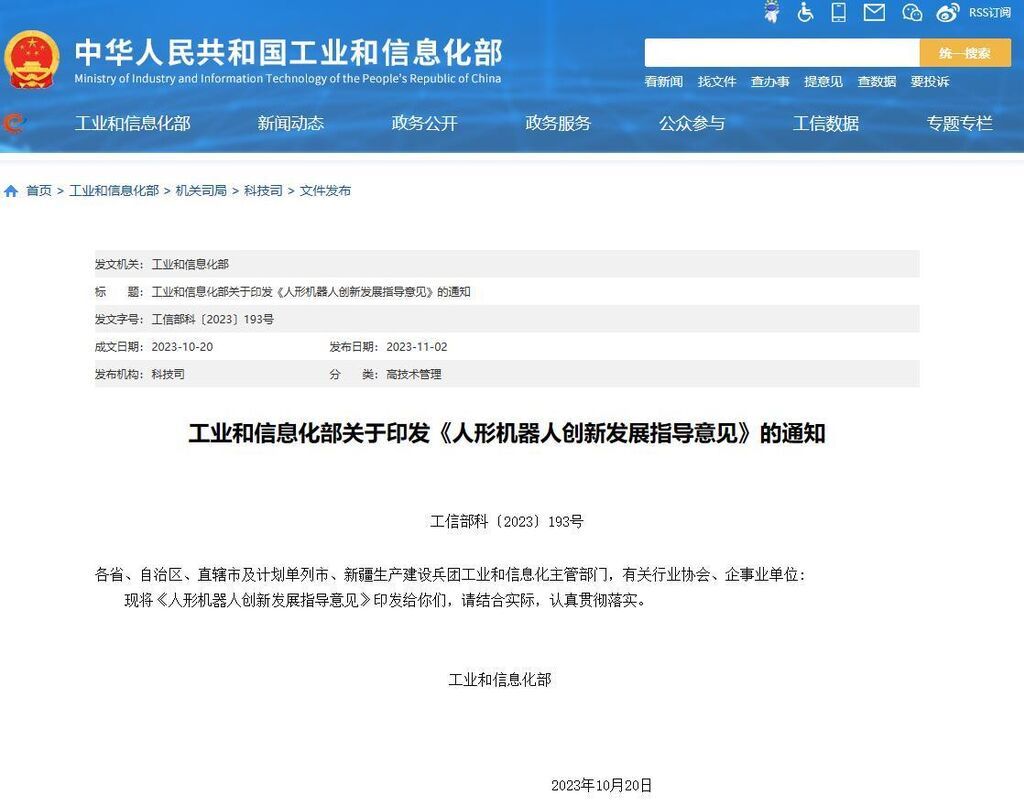 11月2日,工信部官网发布《工业和信息化部关于印发〈人形机器人创新发展指导意见〉的通知》,其中提到,到2025年,人形机器人创新体系初步建立,“大脑、小脑、肢体”等一批关键技术取得突破,确保核心部组件安全有效供给。
