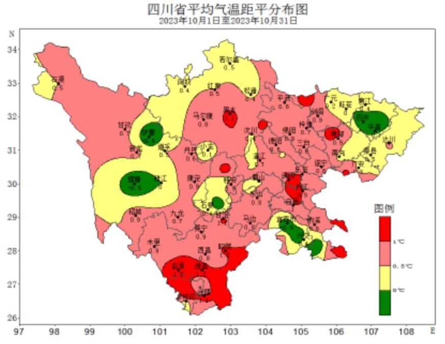 气象观测显示,刚刚过去的10月,四川全省平均气温16.2℃,较常年同期偏高0.6℃,排历史同期第8高位;全省平均降水量72.5毫米,较常年同期偏多14%,位列历史同期第18位左右。