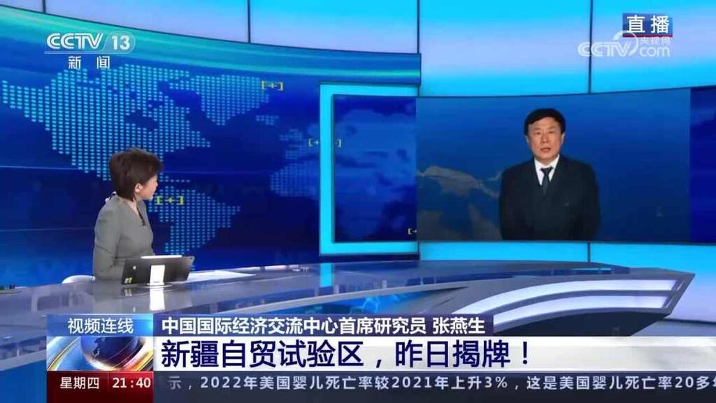 中国国际经济交流中心首席研究员 张燕生:一是桥头堡,它是在构建新发展格局,一个大棋盘中间形成的向西开放的桥头堡。也就是说构建新发展格局,它的后盾以国内大循环为主体,成为新疆向西开放的强大后盾。二是它会形成一个向西开放的,国内国际相互促进的双循环。这个双循环也就是新疆自由贸易试验区,它会对南亚、中亚,甚至西亚,通过中吉乌。从这个角度来讲,它会真正形成一个双循环的重要平台,也包括第三方合作。