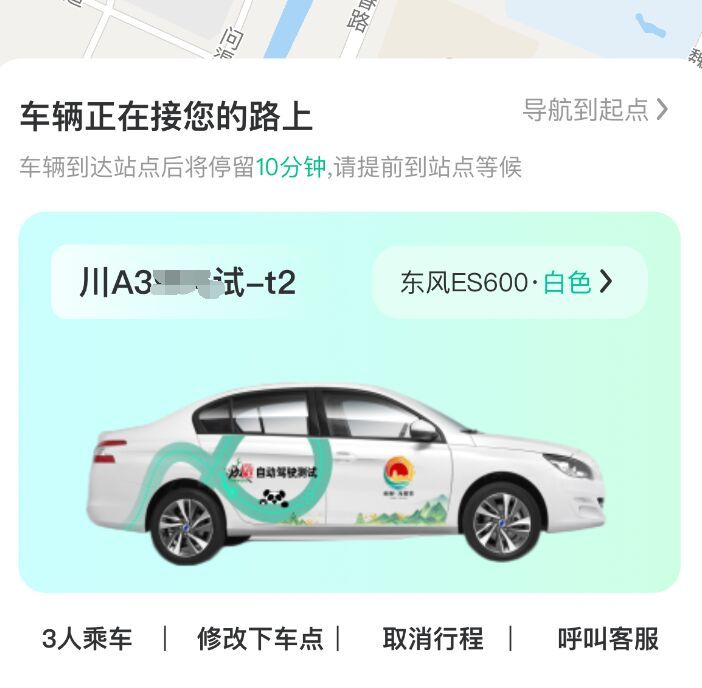 早上9时,2号线界碑站,在“蓉驿约车”小程序确认上车地点后,自动驾驶出租车仅用了3分钟到达。“您好,请系好安全带,我们的试乘之旅即将开始。” 乘客在车载屏幕上验证手机尾号后,坐在驾驶位的安全员提醒。