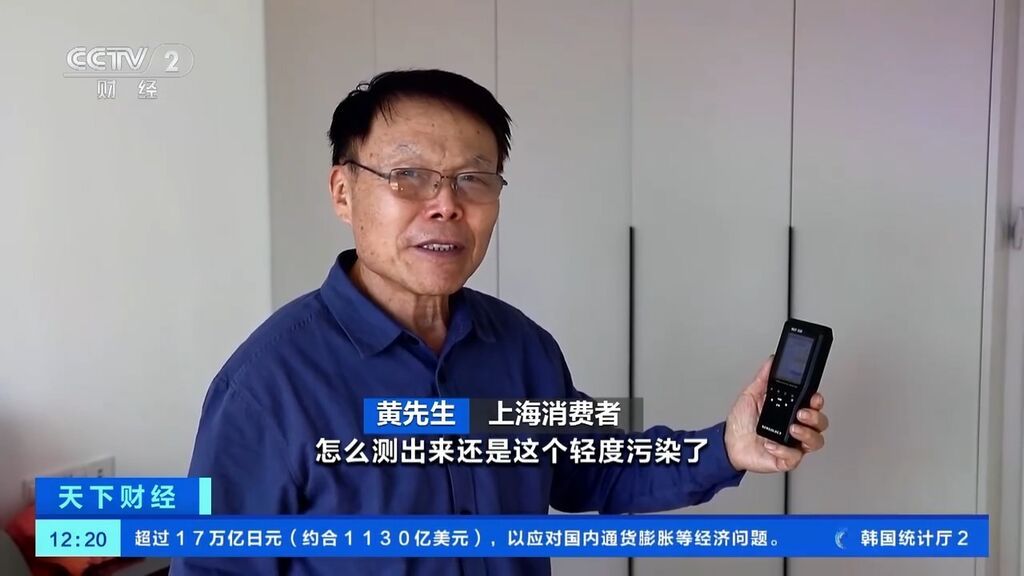上海消费者 黄先生:家里面经常通风,而且买的材料都是比较环保的,测出来还是轻度污染,好长时间人不敢住进来,我现在怀疑表准确度不行。